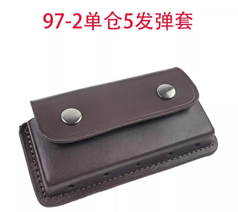 97-2单仓5孔牛皮套97式18.4mm霰弹套黄款折叠5发弹包真皮双排弹套
